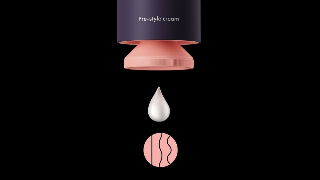 Crema pre-coafare Dyson Chitosan™ ajută la fixarea flexibilă a părului și la pregătirea părului pentru coafare.